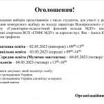26.04.2023 р., у середу, в приміщенні спортзали ВСП «ГПФК МДУ» за адресою вул. Яна – Амоса Коменського, 59 відбудуться збори штатних працівників, які не є науково-педагогічними, педагогічними працівниками, для обрання з них виборних представників з подальшою участю Читати далі …