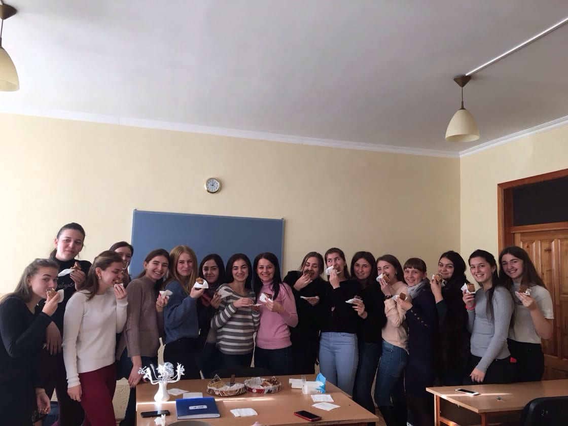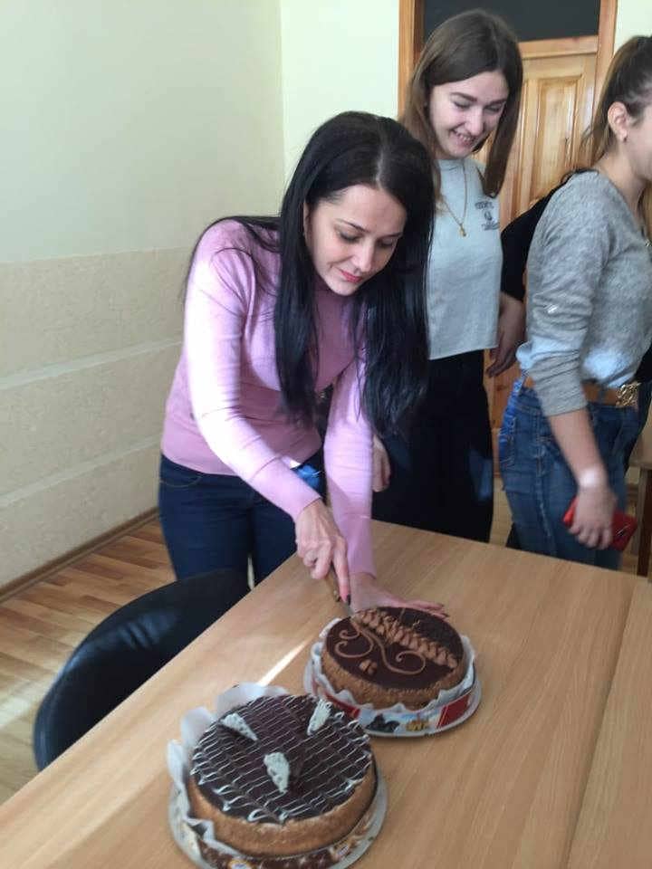 Святкування Дня студента у ГПК МДУ завжди проходить у веселій і позитивній атмосфері. Та як приємно, коли це свято зі студентством розділяють наставники. Так вийшло цього разу! Керівник академічної групи ІІІ-Г курсу Котубей В.Ф. привітала студентів своєї групи солодким сюрпризом! Святкування свята у дружньому студентському колективі разом з курсовим керівником подарувало всім хороший настрій, приємні враження та хвилини святкового дозвілля!