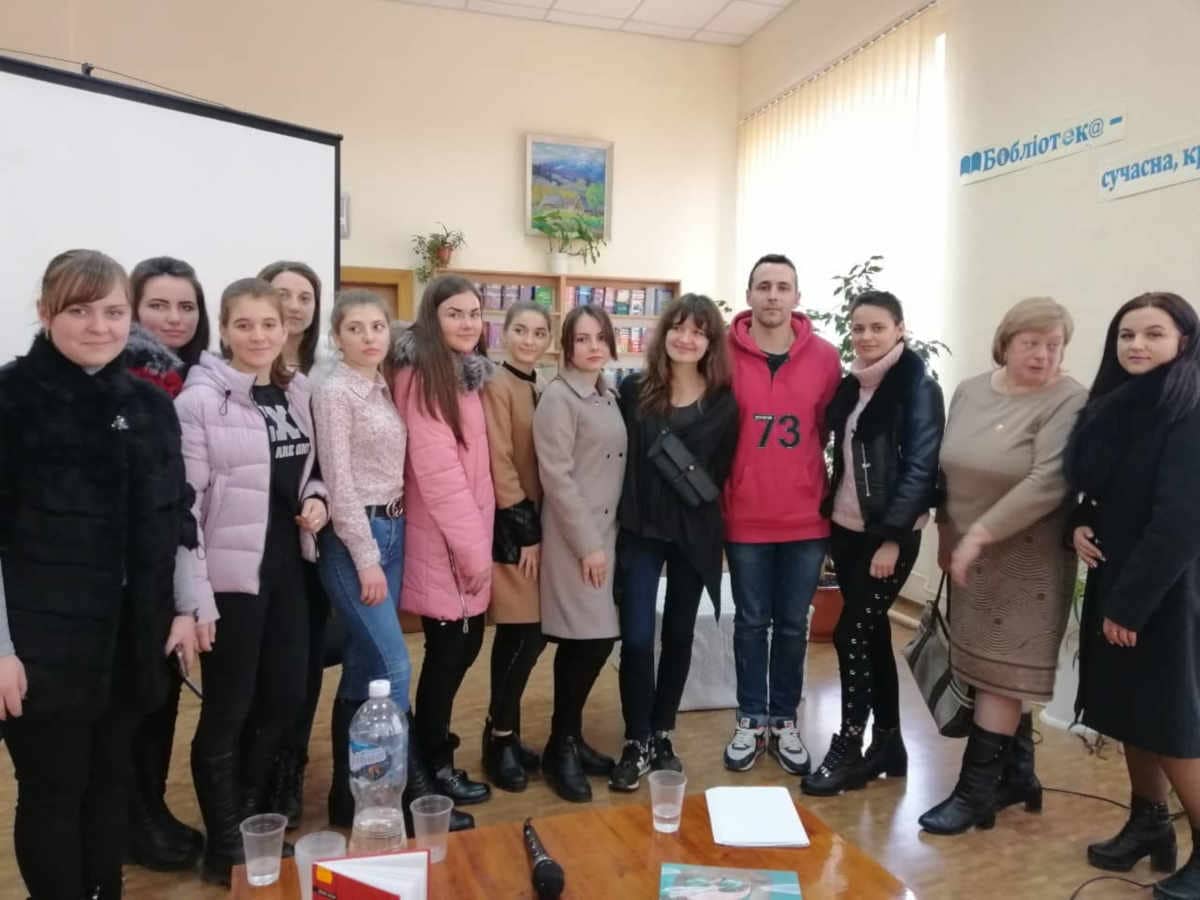 Студенти гуманітарно-педагогічного коледжу МДУ 2-Ж та 2-Г курсів (академічні наставники Глагола О.М. та Грегірчак Д.Б.) прийняли участь у презентації літературного проекту «Мереживо», яка відбулася у міській центральній бібліотеці за участі сучасних українських письменників Ірини Цілик та Артема Чеха, які представили до уваги студентів свої літературні доробки: книжки «Точка нуль» та «Глибина різкості».