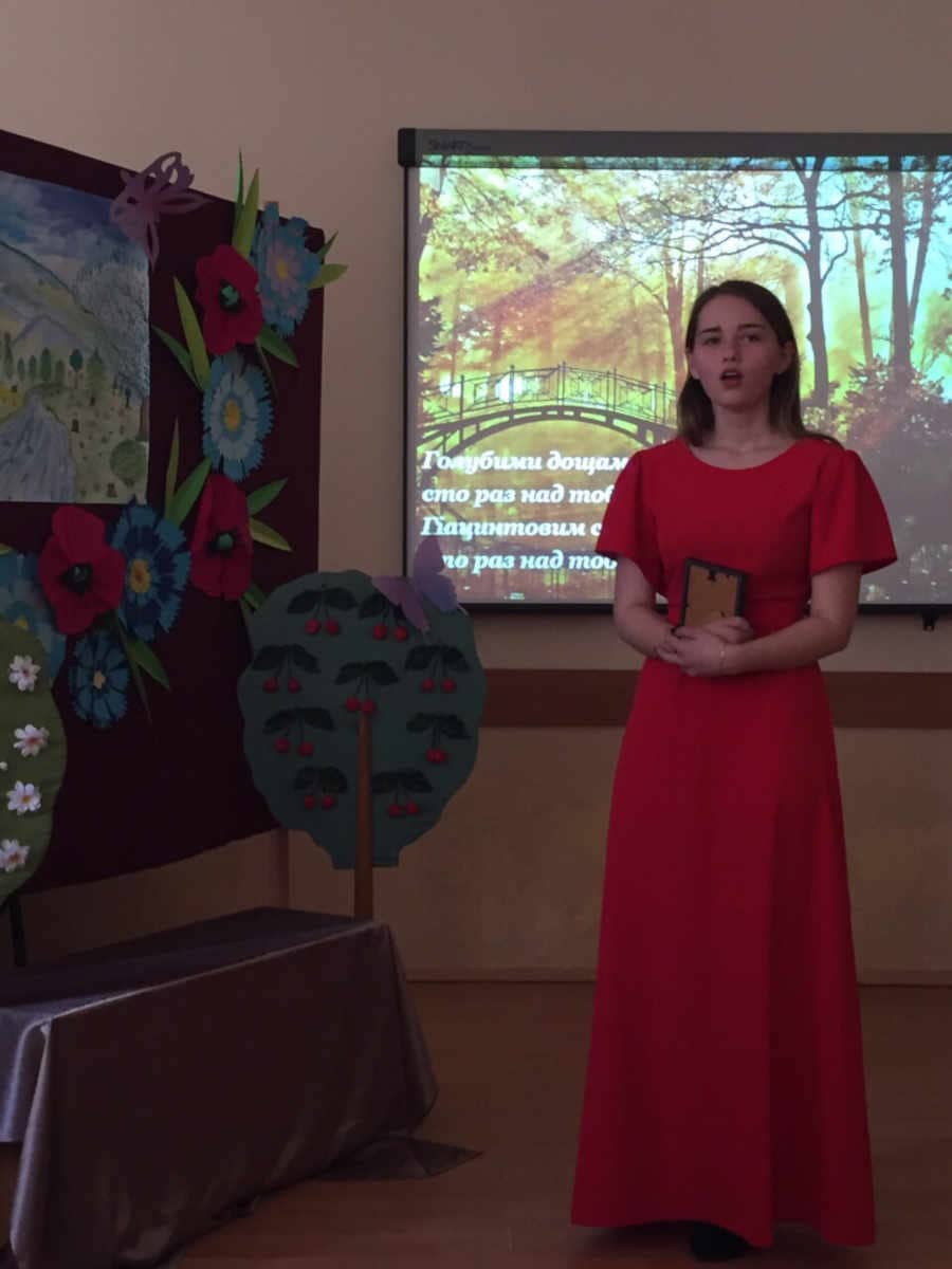 Надзвичайно приємні емоції глядачі відчули від декламації поезії «Мій перший вірш написаний в окопі…», студенткою 1-Б курсу Комарчин Неля та поезії «Я долю вибрала собі сама…», яку декламувала студентка 3-Ж курсу Макара Жанна. Крім звичайного прочитання творів використовувалися відео фрагменти з відомим українським актором Б.Ступкою, який читав поезію «Крила».