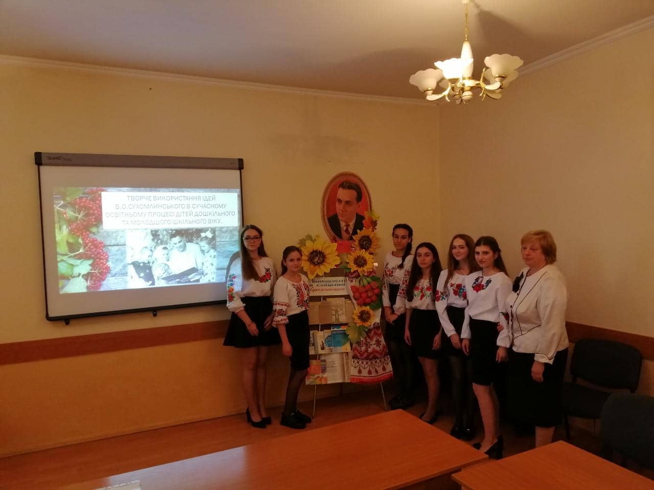 Дуже змістовними і цікавими були доповіді студентів Савко М. «Реалізація поглядів В. О. Сухомлинського на фізичне виховання дітей в умовах сучасних закладів дошкільної освіти», Луганської Г. «Психологічні аспекти педагогічної творчості В. О. Сухомлинського», Довжан Я. «Формування здоров’язбережувальних компетентностей молодших школярів крізь призму ідей В. О. Сухомлинського», Дирда А. «Принципи підходу В. О. Сухомлинського до дітей з особливими освітніми потребами в умовах сучасної школи», Самофал Л. «Погляди В. О. Сухомлинського на педагогіку партнерства як необхідну вимогу Нової української школи», Ряшко А. «Ідеї В. О. Сухомлинського в організації освітнього простору Нової української школи».