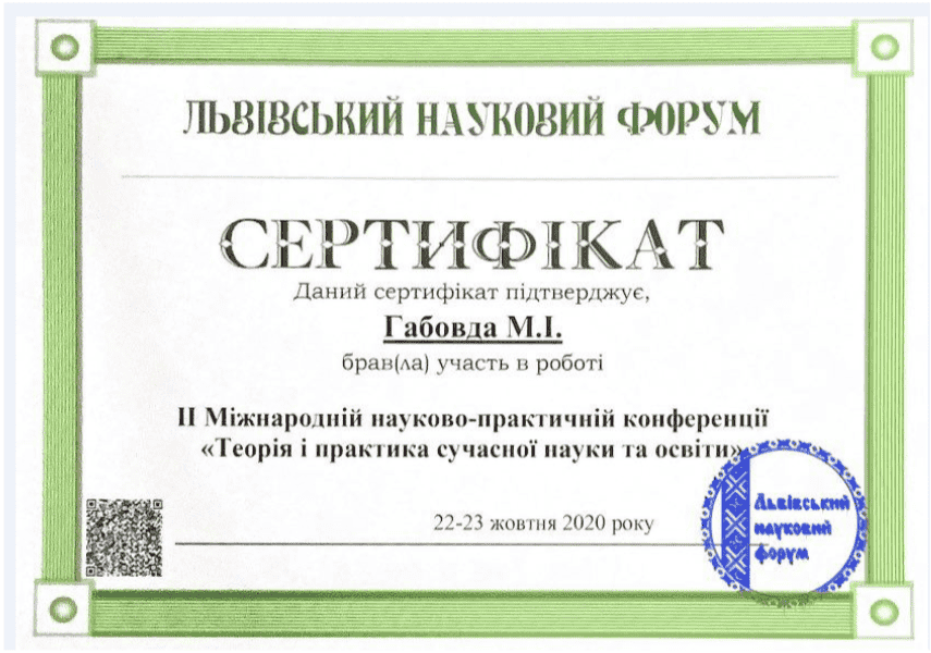 II Міжнародна науково-практична конференція: «Теорія і практика сучасної науки та освіти», м. Львів, 22-23 жовтня 2020р.