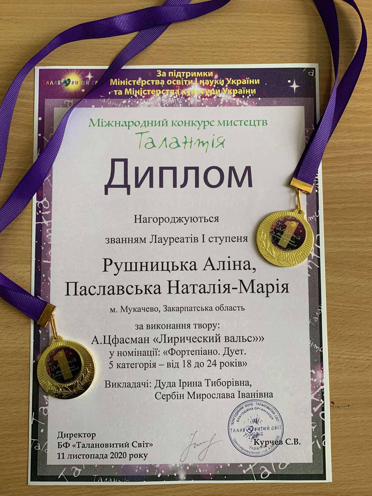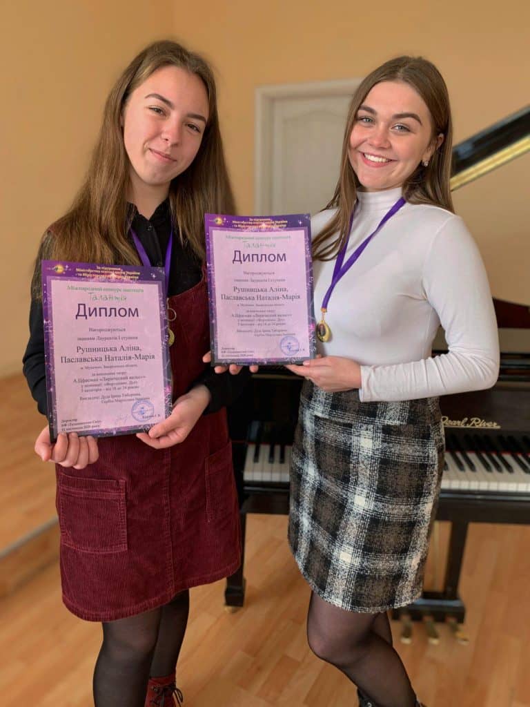 Звання Лауреатів І ступеня отримали студентки фортепіанного дуету Рушницька Аліна та Паславська Наталія-Марія у номінації «Фортепіано. Дует»! Тож вітаємо наших піаністів та їх викладачів – Дуду Ірину Тиборівну та Сербін Мирославу Іванівну з перемогою, побажаємо подальших творчих успіхів і злетів!