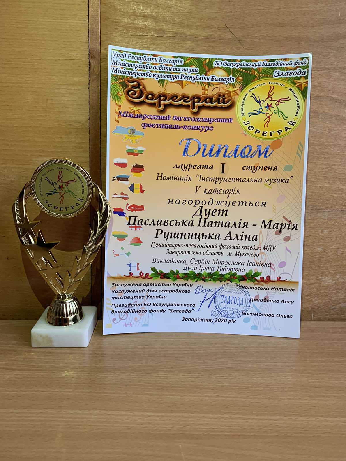Чергова перемога студентів ГПФК МДУ на міжнародному багатожанровому фестиваль-конкурсі «Зореграй», який організовується за підтримки Міністерства освіти і науки України та Міністерства культури Республіки Болгарії.