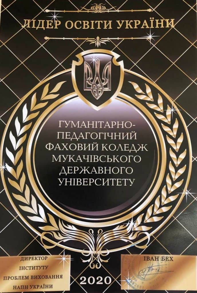 За результатами участі у проєкті Гуманітарно-педагогічний фаховий коледж МДУ та його колектив нагороджено відзнакою «Лідер освіти України», керівника закладу освіти, кандидата педагогічних наук, доцента, Заслуженого працівника освіти України І.І.Кушніра нагороджено відзнакою «Почесний педагог України» та внесено до Книги пошани почесних педагогів.