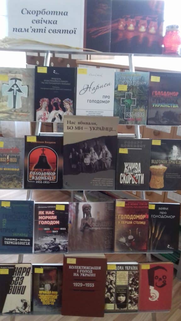 «Скорботна свічка пам’яті святої» — під такою назвою в читальній залі бібліотеки ГПФК МДУ розгорнуто книжкову виставку-реквієм, присвячену Дню пам’яті жертв голодоморів.