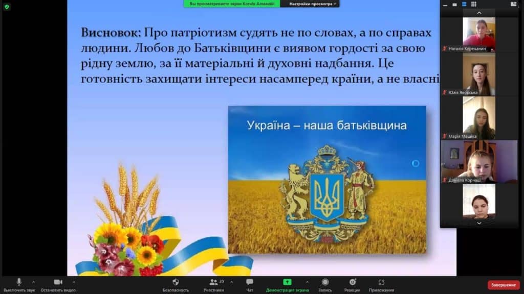 Після активного обговорення, здобувачі освіти зробили висновок, що про патріотизм судять не по словах, а по справах людини. Любов до Батьківщини є виявом гордості за свою рідну землю, за її матеріальні й духовні надбання. Це готовність захищати інтереси насамперед країни, а не власні.