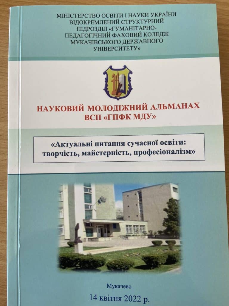 За матеріалами VI науково-практичної Інтернет-конференції здобувачів освіти ВСП «ГПФК МДУ» вийшов збірник тез доповідей науково-практичної Інтернет-конференції здобувачів освіти: «Актуальні питання сучасної освіти: творчість, майстерність, професіоналізм». Учасники конференції розкривають головні ідеї щодо актуальних проблем освіти та науки в умовах сучасних викликів, пошук шляхів впровадження теоретичних засад в освітню практику, висвітлюють результати наукових досліджень у галузі психолого-педагогічних наук.