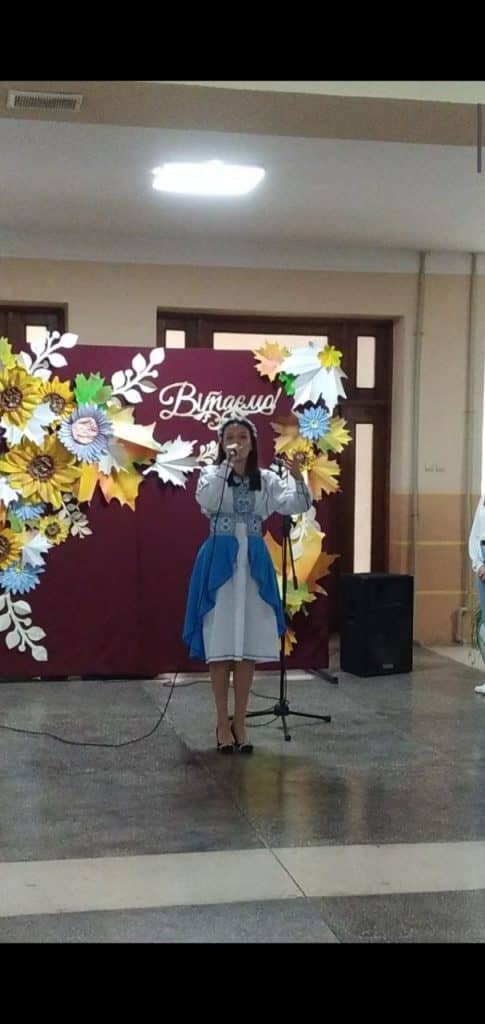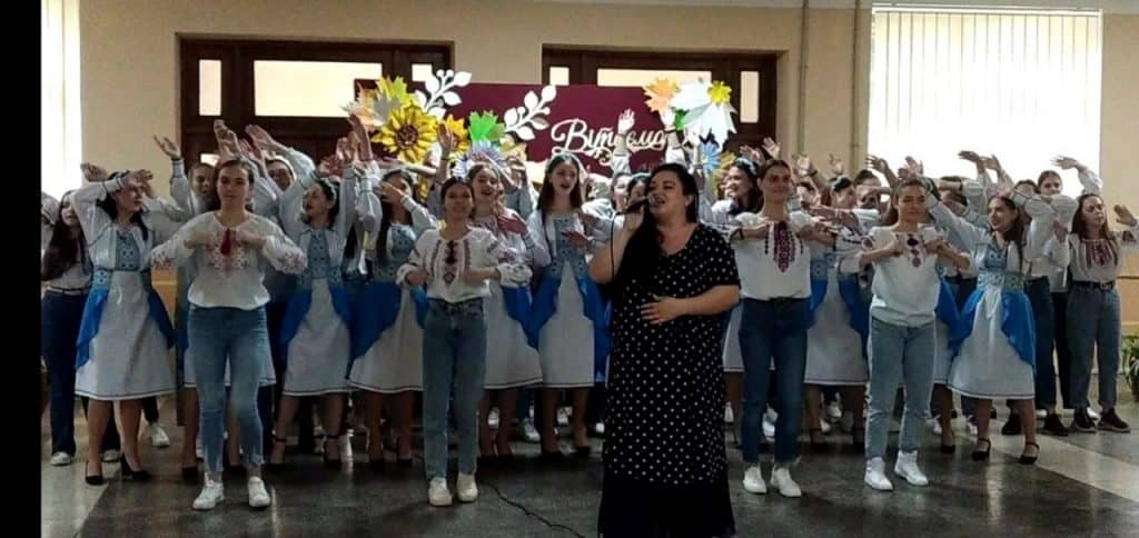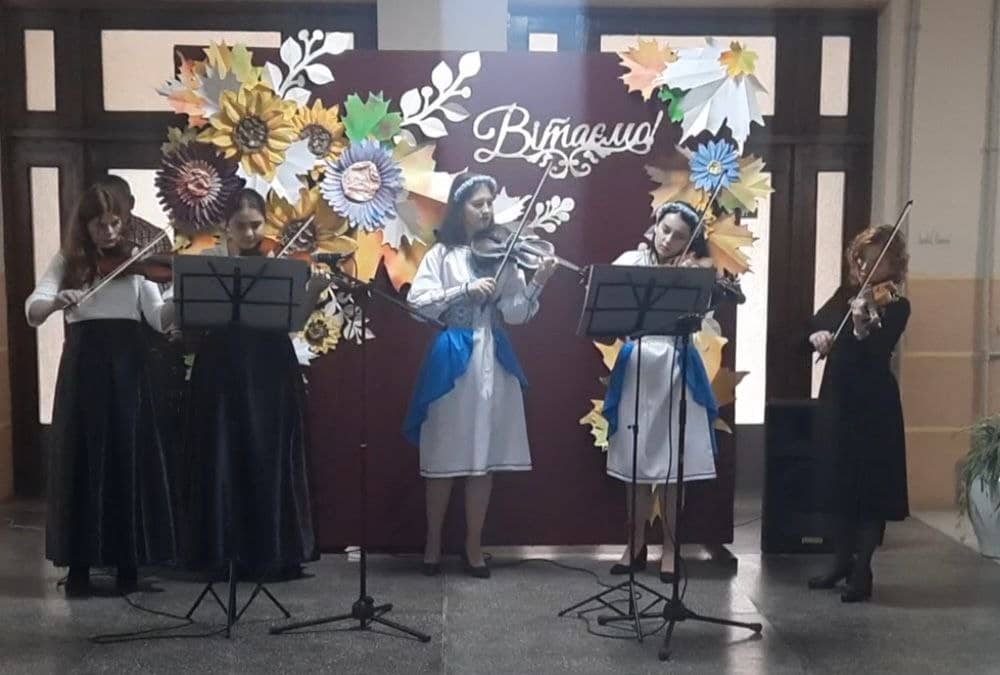 “Повертайсяживим” – у виконанні Олександри Біксей, “Мелодія” М. Скорика – у виконанні ансамблю скрипалів, керівник Ніколетта Барна), вірш ” Зізнання музиці читала Геревич Валерія. В кінці свята прозвучала пісня ” Солов’їна” , яку виконала Вероніка Ковалюк та хор здобувачів освіти музичного відділення і танцювальна група. Підготувала та провела свято викладач постановки голосу Вероніка Ковалюк.