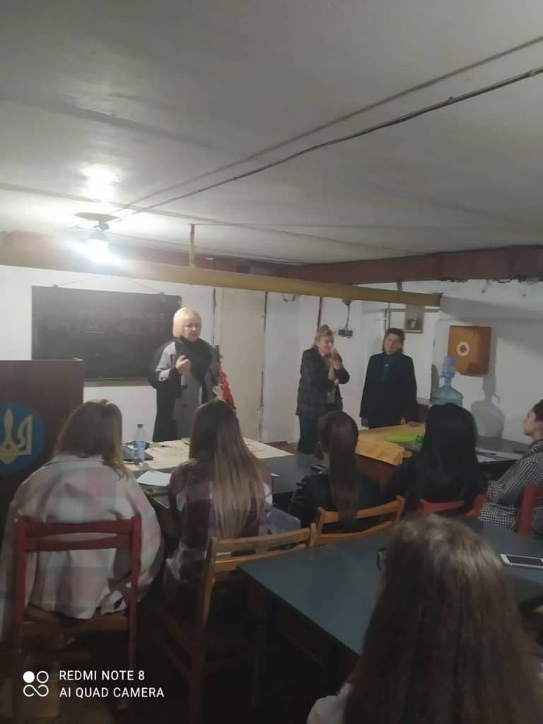Практичний семінар проводився в укритті закладу освіти після сигналу “Увага всім! Повітряна тривога”.