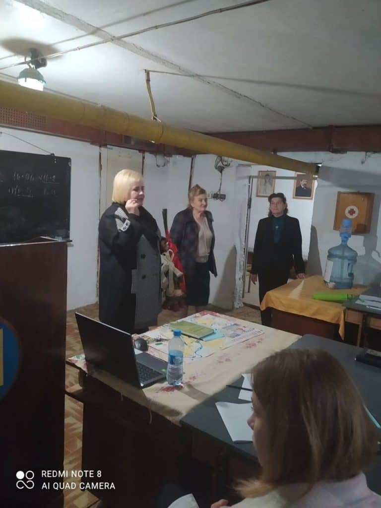 Практичний семінар проводився в укритті закладу освіти після сигналу “Увага всім! Повітряна тривога”.