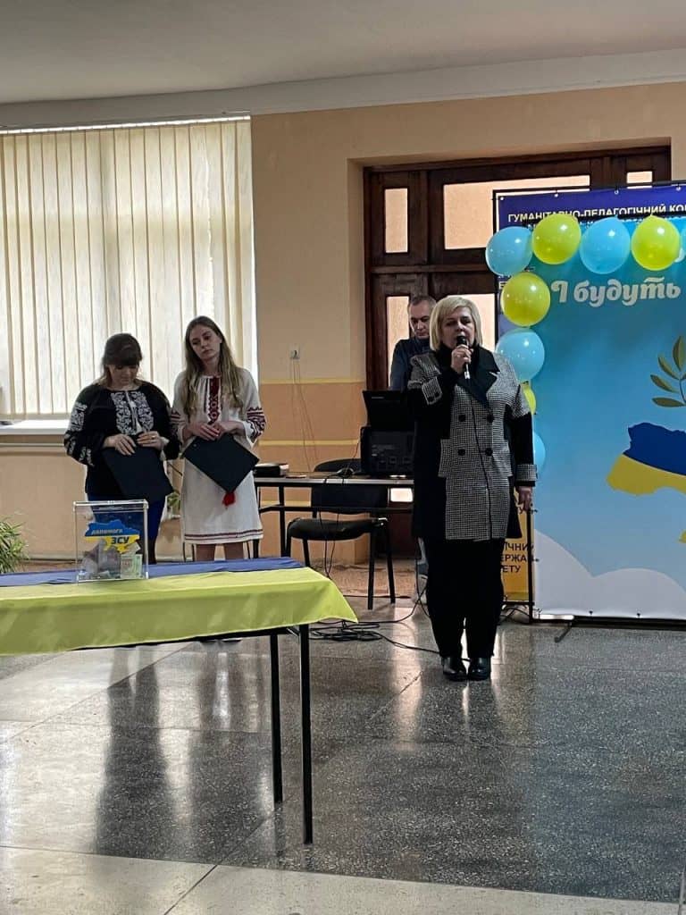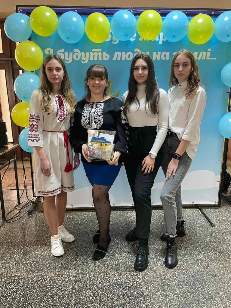 Здобувачка освіти Віолетта Добрянська, заступниця голови студради ВСП «ГПФК МДУ», разом зі здобувачами освіти IV-Г курсу, членами студентської ради, організувала урочистий захід- посвяту Захисникам та Захисницям України та благодійну акцію допомоги ЗСУ, до якої долучилися старостат та всі здобувачі освіти закладу освіти.