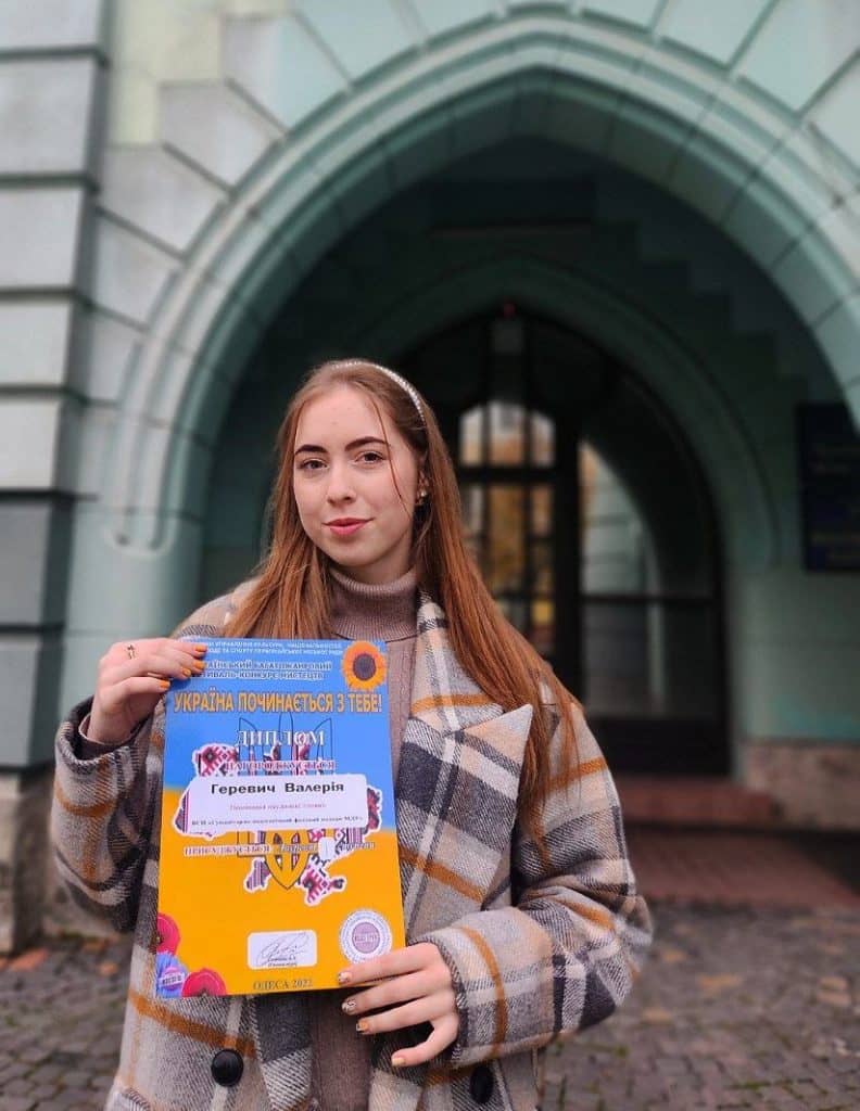 Лауреата І ступеня Всеукраїнського багатожанрового фестиваль-конкурсу мистецтв «Україна починається з тебе» в номінації художнє слово Геревич Валерію здобувачку освіти І курсу музичного відділення з перемогою!