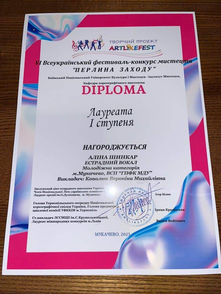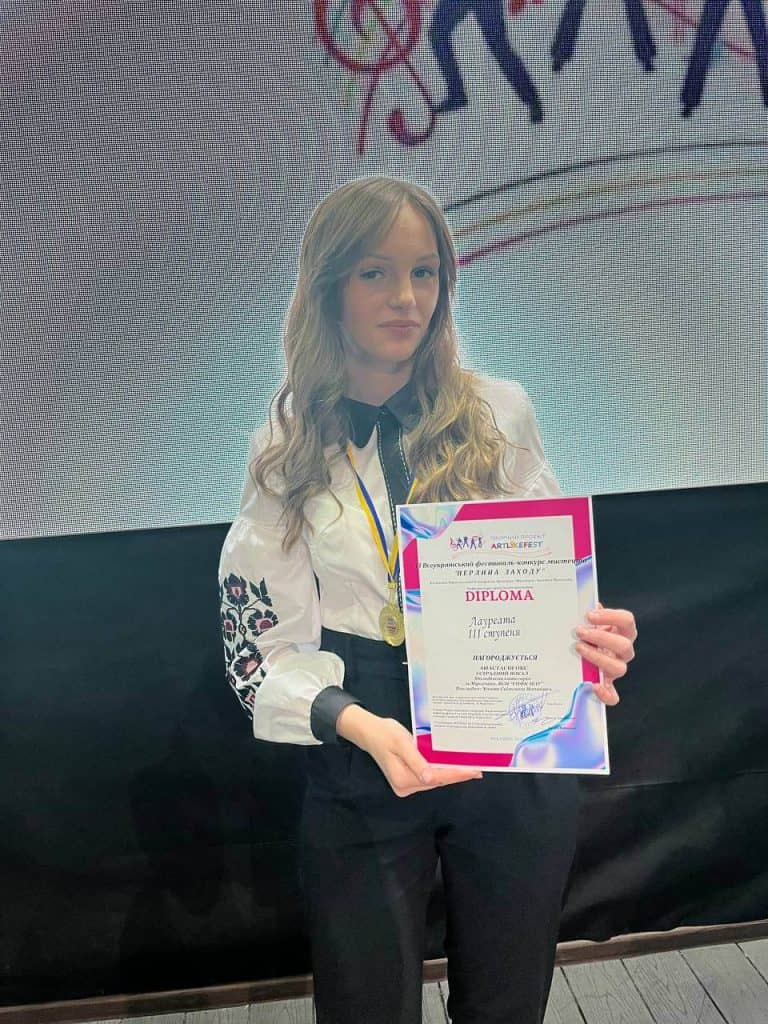 Дипломом Лауреата І ступеня нагороджена Аліна Шинкар (естрадний вокал, молодіжна категорія), клас викладачки Вероніки Ковалюк.