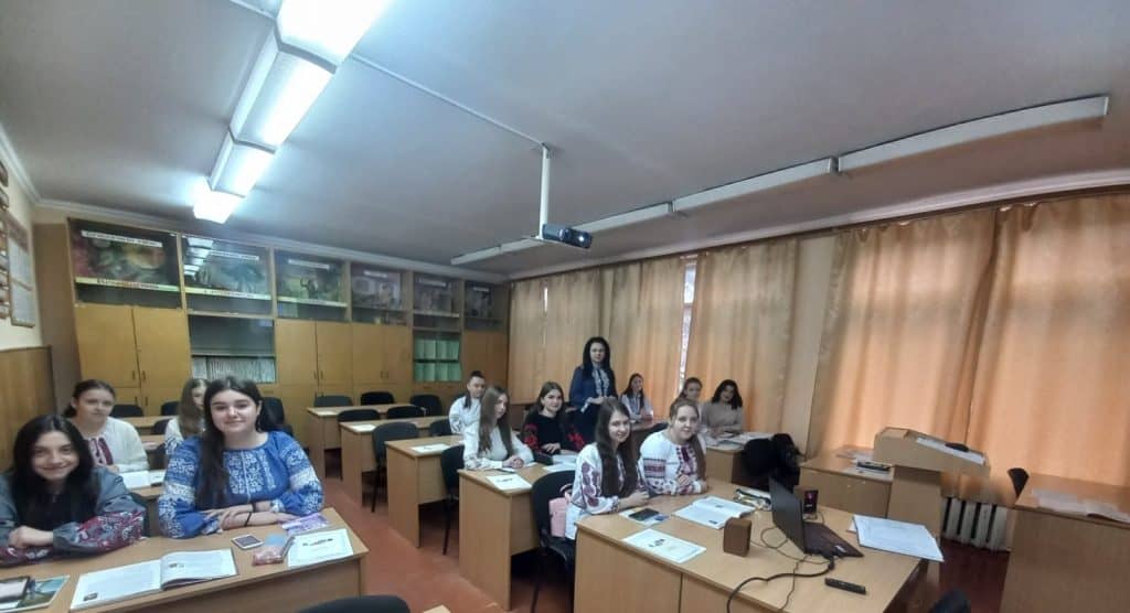 13 березня 2023 року на шкільному відділенні спеціальності 013 Початкова освіта була проведена відкрита пара з навчальної дисципліни «Українська мова» викладачем української мови та літератури Наталією Володимирівною Кампов зі здобувачами І курсу групи Г. У ході теоретичного (лекційного) заняття було розкрито надзвичайно актуальну на сьогодні тему мовної стійкості в українському суспільстві та дискусії як виду комунікації.