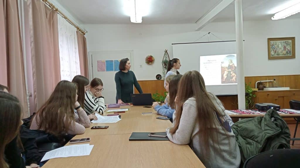 13 березня 2023 року у Відокремленому структурному підрозділі «Гуманітарно-педагогічний фаховий коледж Мукачівського державного університету» викладачем образотворчого мистецтва та художньої культури Беспалько Л.А. було проведено відкрите семінарське заняття на тему «Художня культура Італії, Франції та Іспанії епохи «титанів» зі студентами 2 курсу групи Б спеціальності «Початкова освіта», в ході якого здобувачі освіти мали можливість закріпити набуті раніше знання щодо відомих живописців епохи Відродження, особливостей архітектури Іспанії та європейського паркового дизайну.