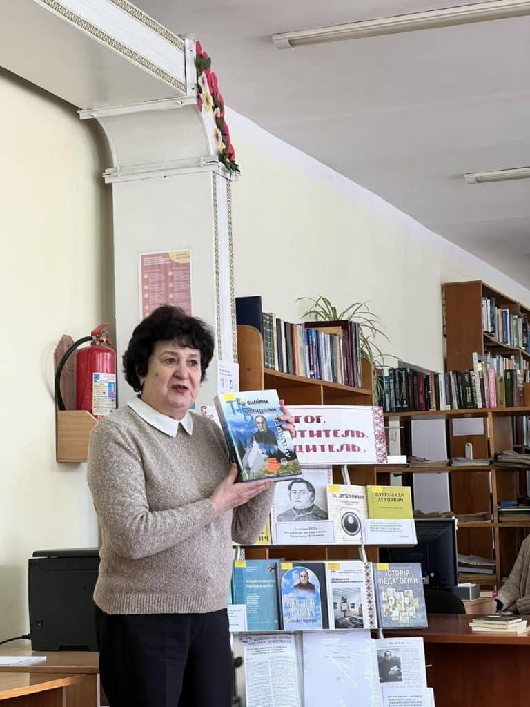 Колоритності та своєрідності «Педагогічній світлиці» додало переплетіння виступів з виконанням фрагментів поетичних творів Будителя, переглядом фільму про його життя і творчість «Пам`яті Олександра Духновича» обласної студії «Тиса». Завідувачка бібліотекою Н. І. Абельчакова презентувала виставку педагогічної літератури «Педагог. Просвітитель. Будитель», ознайомила присутніх з новими науковими, періодичними виданнями досліджень творчої спадщини Великого карпатського діяча.