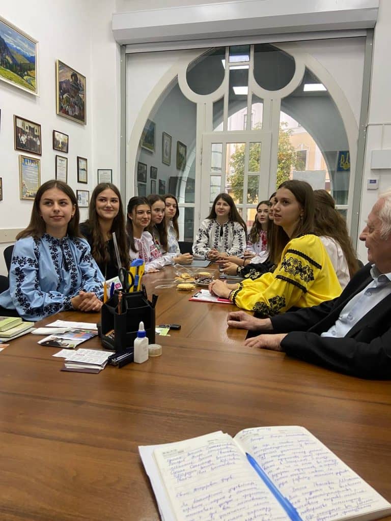 19 вересня 2023 року здобувачі освіти ІІ-Н курсу (керівник академічної групи Гала М.І.) з заступницею директора з виховної роботи ВСП «ГПФК МДУ», кандидатом філологічних наук, доцентом Мариною Паук відвідали Раду почесних громадян та зустрілися з Головою Ради почесних громадян м. Мукачева Федівим Євгеном Теодоровичем, почесними громадянами Цигаком Василем Станіславовичем, Шпеником Василем Івановичем, Суханом Олександром Васильовичем.
