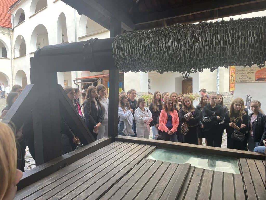 3.10.2023 р. з метою ознайомлення здобувачів освіти 1-Б курсу та 1-Г курсу з культурними та історичними пам’ятками рідного краю було проведено екскурсію до замку Паланок. Разом з керівниками академічних груп Ісак Т.В. та Граб М.В., студенти занурилися в цікаву історію замку. Відвідали виставкові експозиції замку, зокрема “Катівню”, експозицію присвячену воїнам АТО. Підготовлений працівниками замку невеликий мультиплікаційний фільм став родзинкою нашої екскурсії, де здобувачі освіти змогли побачити всю історію замку, від “першої башні” до наших днів. Загалом екскурсія залишила дуже позитивні враження у здобувачів освіти, багато чого вони дізналися нового та приємно провели час.
