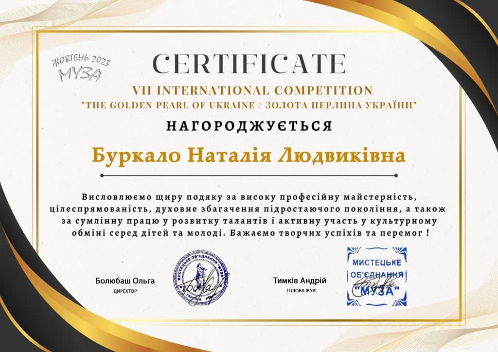 Подяку від організаторів та журі, за професійну підготовку учасників до конкурсу, плідну творчу співпрацю, збереження та розвиток культури України отримали викладачі Буркало Наталія Людвиківна та Дуда Ірина Тиборівна.