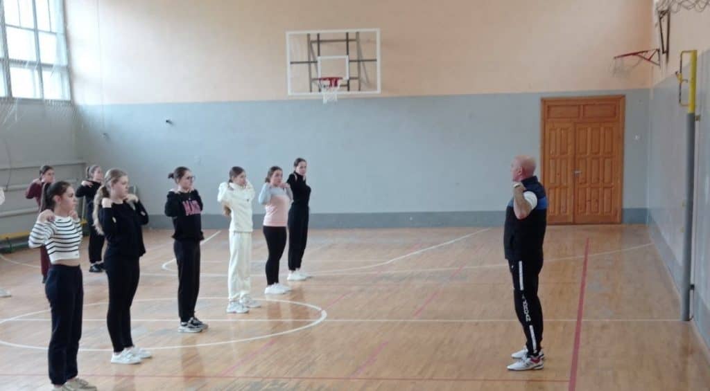 У процесі реалізації мети заняття здобувачі освіти ознайомилися з основними елементами баскетболу, навчалися і вдосконалювали ведення та передачі м’ яча. Під час проведення естафети з елементами баскетболу викладач сприяв розвитку в здобувачів освіти фізичних якостей (швидкість, спритність, сила), виховував дисципліну, організовану роботу на уроці.