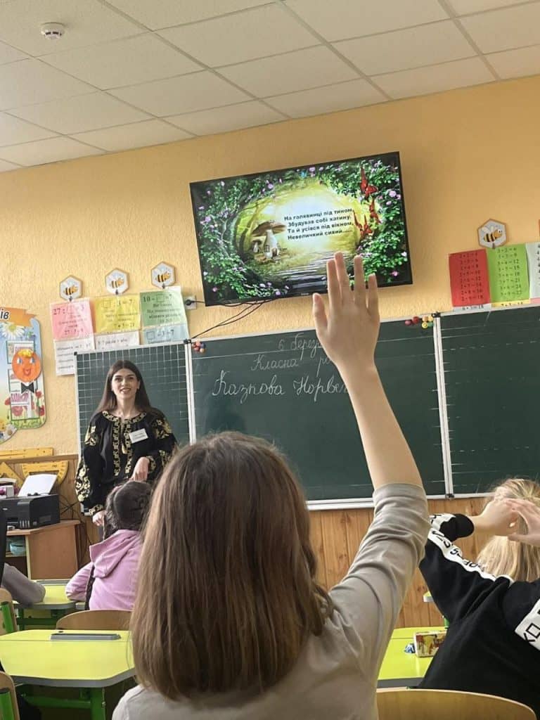 Людмила Бігун проводила урок Мистецтва (образотворче мистецтво), на тему створення пейзажу «Північне сяйво». Учні мали унікальну можливість втілити свої художні навички в створенні власних арт-проєктів, що відображають красу цього природного явища. Здобувачка освіти застосувала елементи інтегрованого навчання на уроці мистецтва, зокрема учні «озвучували картину», підбирали музичний твір, який відповідає характеру картини. Молодші школярі виявили креативність та творчість у виконанні завдання, називали найрізноманітніші твори музичного мистецтва.