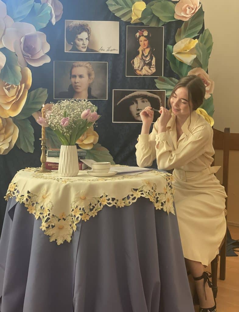 Цікаво було послухати, як відомі на весь світ мисткині слова через лірику зуміли передати глибокі душевні переживання, яка історія кохання у кожної з них. Так, Марусю Чурай та Лесю Українку зіграли здобувачки освіти І – Б курсу Андріана Ходжаніязова та Дарина Марічак, Наталію Лівицьку-Холодну та Ліну Костенко – студентки ІІІ – Б курсу Раїса Рогач та Амелія Капац. Усі вони відкривали глядачам таємниці своєї любові, яка надихала кожну на створення чутливої інтимної лірики.