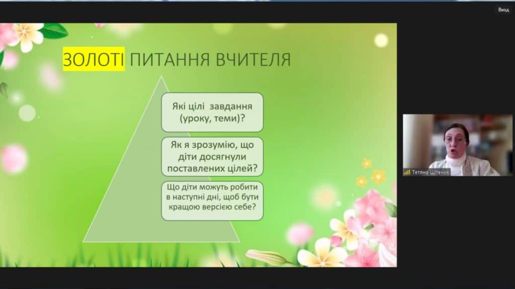 В ході лекції Тетяна Шпеник відкрила нові перспективи у розумінні процесу навчання, де формувальне оцінювання виступає не лише як засіб оцінки знань учнів, але й як інструмент, що сприяє їхньому особистісному та інтелектуальному розвитку. Вона акцентувала на важливості залучення учнів до самооцінювання та саморефлексії, що є ключовими для формування відповідального ставлення до власного навчального процесу та розвитку.