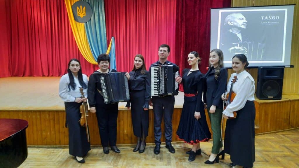 Захід підготував викладач предметної (циклової) комісії гри на народних інструментах Кардашинець Т.М., за участі викладачів та здобувачів освіти музичного відділення коледжу. Присутні мали змогу почути концертну програму у сольному виконанні Т. Кардашинця (акордеон), інструментальних дуетів у складі Тараса та Віри Кардашинець (акордеон, фортепіано), Тетяни Дуди та Тараса Кардашинця (баян, акордеон). Прикрасили концертну програму виступи ансамблю скрипалів у складі Мар’яни Горзов та Маргарити Гоми (клас викл. Кюкало Л.В.) та темпераментна хореографія Каріни Сватко на музику «Лібертанго» А.П’яццоли, здобувачки освіти 3-В курсу. Присутні на концерті гості, викладачі та здобувачі освіти отримали насолоду від спілкування з музикою танго, про що свідчила тепла атмосфера в залі та бурхливі оплески вдячних слухачів.