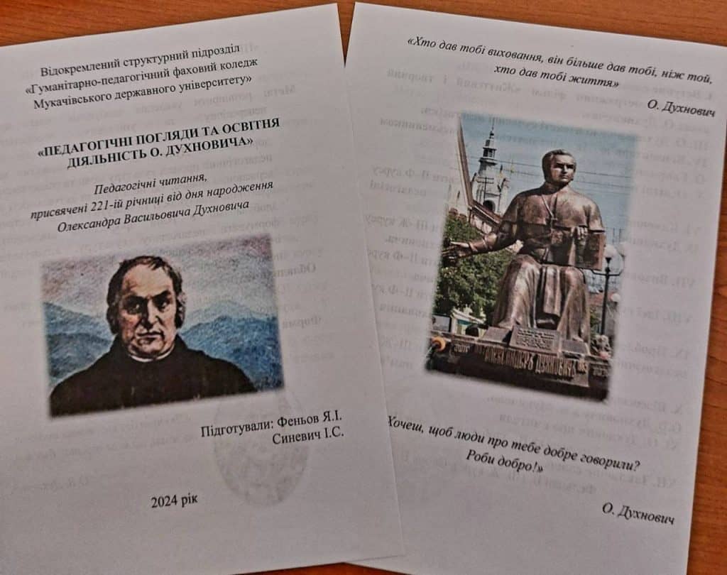 30 квітня 2024 року проведено педагогічні читання, присвячені 221-ій річниці від Дня народження Олександра Васильовича Духновича «Педагогічні погляди та освітня діяльність О. Духновича». Модерували захід викладачі предметної (циклової) комісії педагогіки, психології, методик дошкільного виховання та фізичної культури – Феньов Я. І. та Синевич І. С.