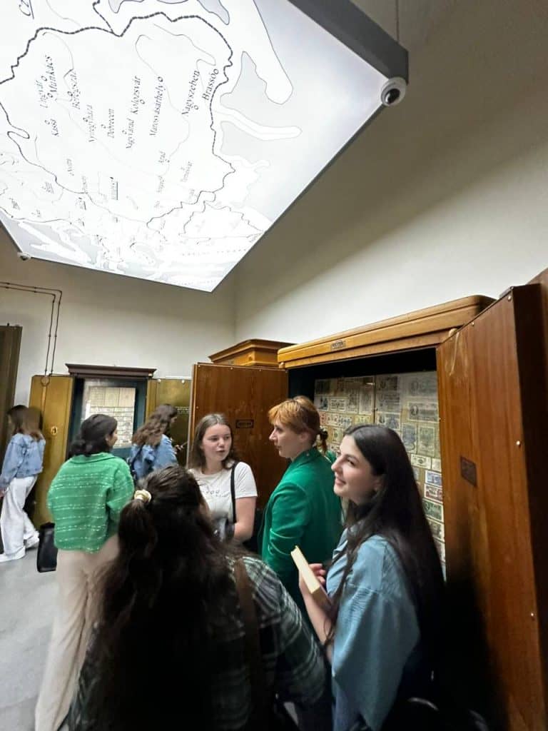 Студенти мали змогу побачити унікальний старовинний банківський сейф, спеціальні шафи тогочасного і сучасного періодів, де колись зберігали важливі цінні папери та інші коштовності. Загалом, у приміщенні банку можна ознайомитися з різними цікавими музейними експонатами.