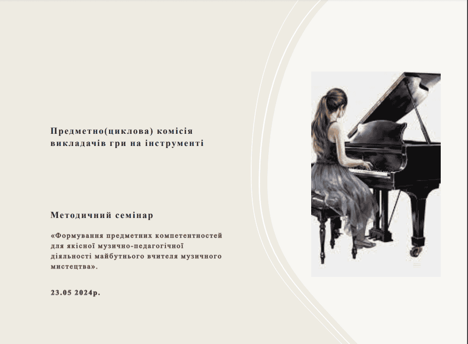 Предметною (цикловою) комісією викладачів гри на інструменті був проведений методичний семінар на тему «Формування предметних компетентностей для якісної музично-педагогічної діяльності майбутнього вчителя музичного мистецтва та музичного керівника».