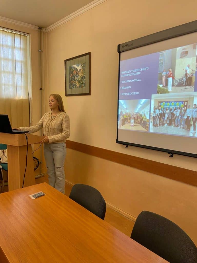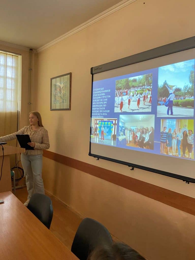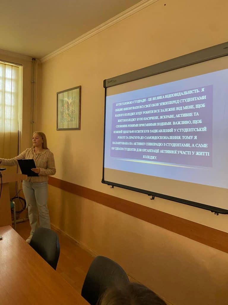Кандидатка на посаду голови студради самоврядування ВСП «ГПФК МДУ» представила свою передвибочу програму на старостаті, яку було поширено для ознайомлення всім здобувачам освіти Коледжу.