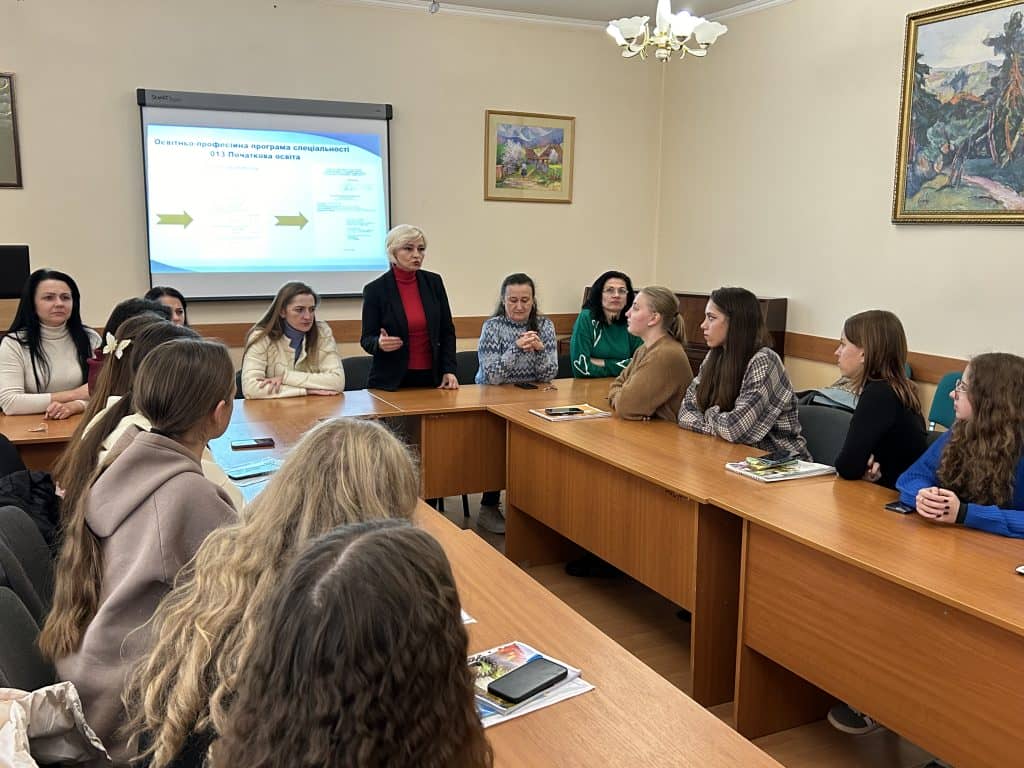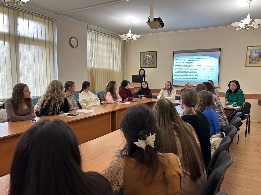 Цими днями відбулися зустрічі робочої групи ОПП «Початкова освіта» зі здобувачами ІІІ курсу шкільного відділення з метою ознайомлення їх зі структурою та змістом освітньо-професійної програми, що забезпечує підготовку за фахом «вчитель початкових класів закладу загальної середньої освіти». У ході комунікації було проаналізовано зміст програми, послідовність реалізації освітніх компонентів упродовж навчання, їх логічний взаємозв’язок. Особливу увагу члени робочої групи звернули на формування загальних та спеціальних компетентностей, а також на досягнення максимальних результатів навчання.