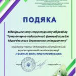 19 березня 2025 року відбудеться гостьова лекція у рамках вивчення дисципліни «Педагогіка» на тему: «Методи формування суспільної свідомості та їх характеристика» для здобувачів освіти третіх курсів, спеціальності 013 «Початкова освіта» та 014.13 Середня освіта (Музичне мистецтво). Запрошена лекторка Читати далі …