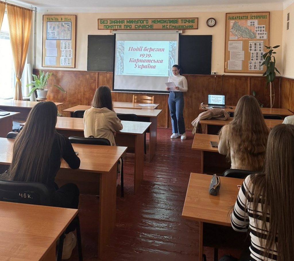 Здобувачі освіти представили свої дослідження присвячені життю та діяльності А. Волошина, а також підготували історичні свідчення про події незалежності Карпатської України. Змістовне та інформаційно насичене заняття вдало поєднало історичні та етнографічні процеси на Закарпатті в період ХХ ст.