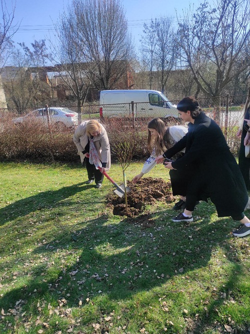 20.03.2025 р., в день весняного рівнодення, в рамках виховної роботи, здобувачі освіти 2-Б та 3-Б курсів відзначили День Землі. Разом з керівниками академічних груп Тетяною Ісак та Евеліною Алмашій до уваги глядачів було представлено невелику програму з елементами екологічного, громадянського та національно-патріотичного виховання. Українські мелодії та вірші зачіпали серце, тематичні сценки піднімали питання забруднення навколишнього середовища, робота з залом налаштовувала на спільні зусилля по збереженню природи, а завершенням заходу стало озеленення території навчального закладу (висаджування дерев).