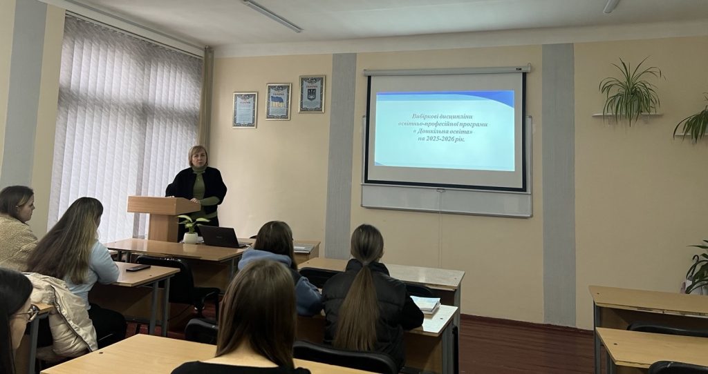 Так, відповідно до Положення про порядок та умови здійснення вільного вибору навчальних дисциплін здобувачами освіти у ВСП «ГПФК МДУ» в.о завідувача дошкільного відділення Наталією Кертис було проведено інформативну роботу зі студентами ІІ та ІІІ курсу щодо представлених для вільного вибору освітніх компонентів у затвердженому Каталозі вибіркових дисциплін, рекомендованих для вивчення у наступному навчальному році (на ІІІ і ІV курсах). Здобувачі освіти мали змогу переглянути презентації вибіркових дисциплін із короткою характеристикою кожної. У ході зустрічі відбулася комунікація між викладачами та здобувачами освіти про їхні вподобання, напрямки особистісного розвитку.