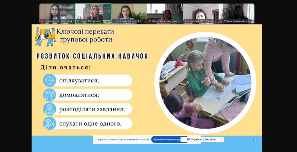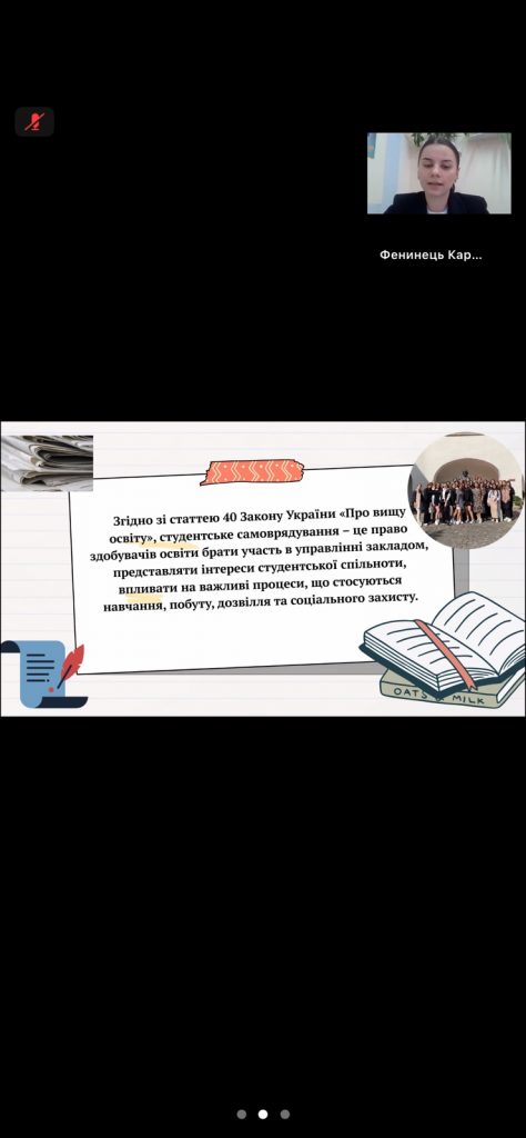 Здобувачі освіти взяли участь у секційних засіданнях, де виступили з доповідями: Каріна Фенинець «Від самостійності до співуправління: студентське самоврядування як простір розвитку лідерських якостей» науковий керівник – Вікторія Грицько, Дарина Марічак «Інклюзія в закладах освіти: виклики сьогодення та шляхи адаптації» науковий керівник – Алла Тягур; Евеліна Урста «Штучний інтелект в освіті: нові можливості для педагогів та здобувачів» науковий керівник – Наталія Фийса; Марʼяна Химинець «Застосування сучасних педагогічних технологій на уроках інтегрованого курсу «Я досліджую світ» в контексті підготовки вчителів початкової школи» науковий керівник – Тетяна Ісак; Анна Сідор «Психолого-педагогічні умови організації індивідуального підходу під час проведення творчих занять» науковий керівник – Ольга Куцик; Богдана Маті – «Сучасні виклики підготовки фахівців у сфері соціальної роботи» науковий керівник – Оксана Заяць.