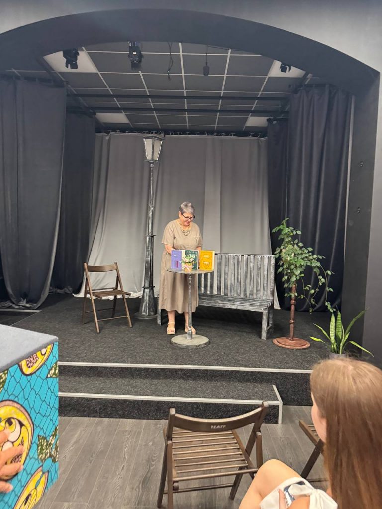 Гостя презентувала свої літературні збірки, отримала низку запитань від молодої аудиторії, мудрі слова та поради від Димитра Кешелі та Мирослава Дочинця.
