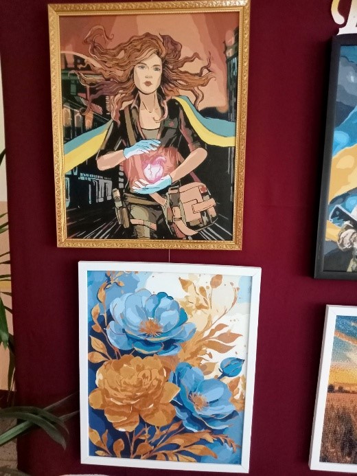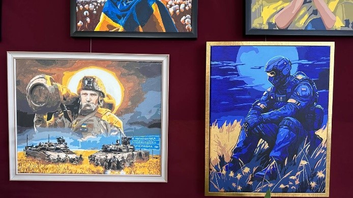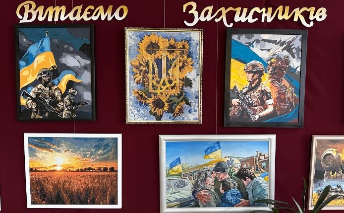 Серед робіт – символічні образи воїнів, що уособлюють мужність і незламність, полотна із соняшниками та квітами у національних барвах, які символізують життя, відродження та красу України. Особливу увагу привертають картини із зображенням родинних зустрічей воїнів та мирних пейзажів рідної землі, які нагадують про те, заради чого відстоюється свобода.