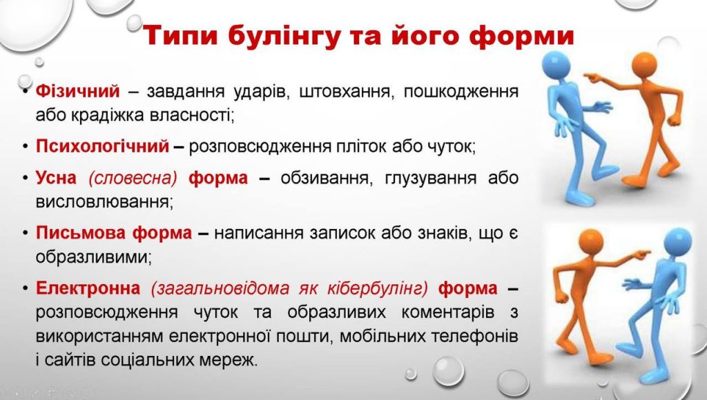 – що таке булінг і які його основні види;