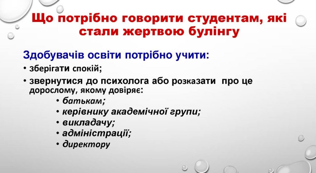 – як правильно діяти, якщо став свідком або жертвою булінгу;