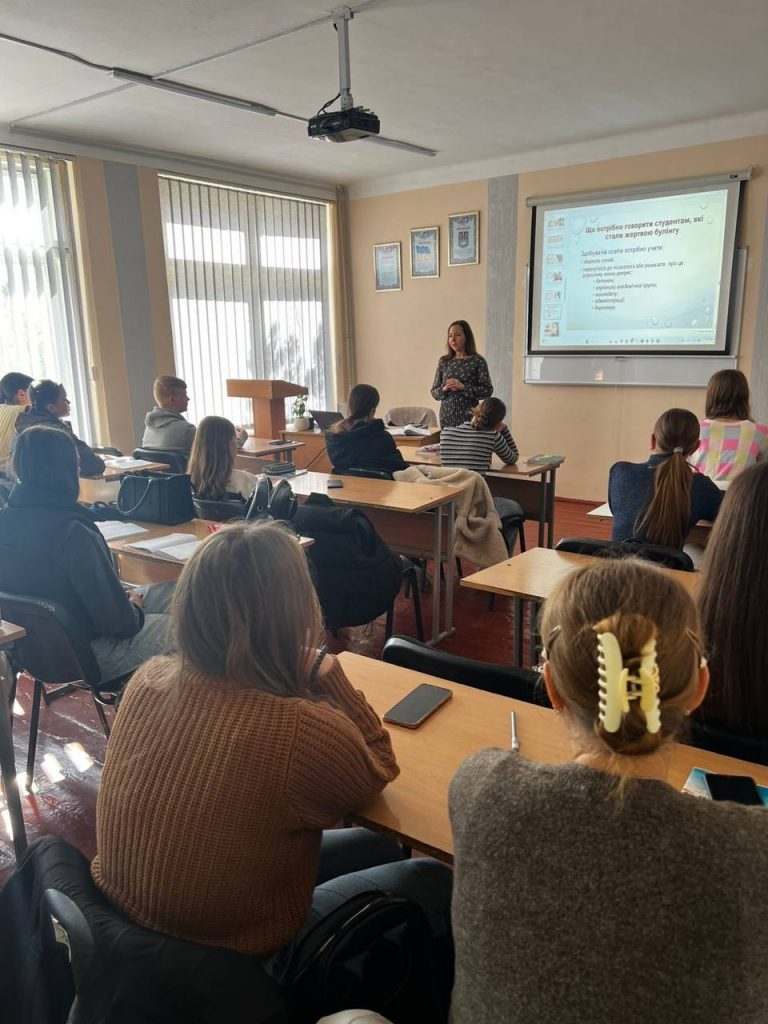У перший понеділок жовтня відзначається Всесвітній день запобігання булінгу. З нагоди цієї дати у нашому коледжі викладач правознавства Грицько Вікторія Василівна спільно з практичним психологом Старовою Юлією Василівною провели ряд тематичних годин спілкування зі студентами перших курсів, присвячених темі протидії булінгу.