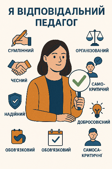 Під час підбиття підсумків учасники створили спільний плакат «Я відповідальний педагог», на якому відобразили ключові риси, що вважають важливими для майбутнього вихователя: чесність, турботу, повагу, надійність, відданість дітям, саморозвиток, приклад для інших.