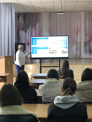 Під час комунікації Віталія Михайлівна ознайомила студентів із особливостями навчання дітей з особливими освітніми потребами (ООП) у Мукачівському ліцеї № 11, розповіла про динаміку збільшення їх кількості у школі, важливість створення безпечного, комфортного й підтримувального освітнього середовища, а також наголосила на професійній готовності майбутніх педагогів до роботи в умовах інклюзивної освіти.