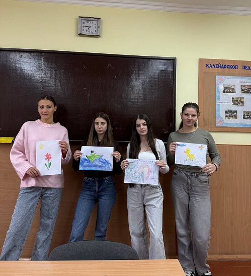 Спільна аналітична робота дала студентам можливість побачити, як дитячий малюнок перетворюється на діагностичний інструмент, що дозволяє оцінити рівень розвитку, особливості сприймання, форму мислення та емоційні стани дитини. Такі заняття стають простором професійного зростання, де майбутній педагог навчається працювати не лише з малюнком, а й з особистістю маленького автора, уважно й науково осмислюючи кожен штрих.