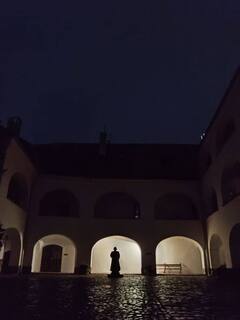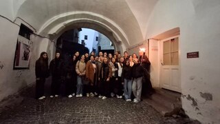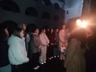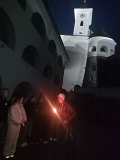 Вечірня екскурсія вирізнялася особливою атмосферою — захопливі оповіді, театралізовані сцени, інтерактивні дії та яскравий артистизм гіда Максима Адаменка перетворили звичайний похід до замку на справжнє занурення в історію. Студенти не лише пізнали багато нового про життя замку, його володарів і оборонців, але й отримали море позитивних емоцій, вражень і гарного настрою.