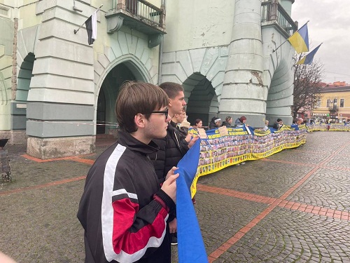 У Мукачеві, на площі Кирила та Мефодія, відбулася акція на підтримку українських військовослужбовців, які перебувають у російському полоні або вважаються зниклими безвісти.