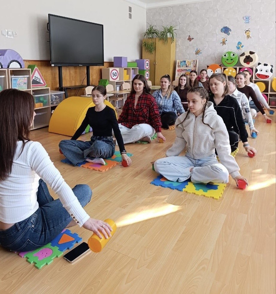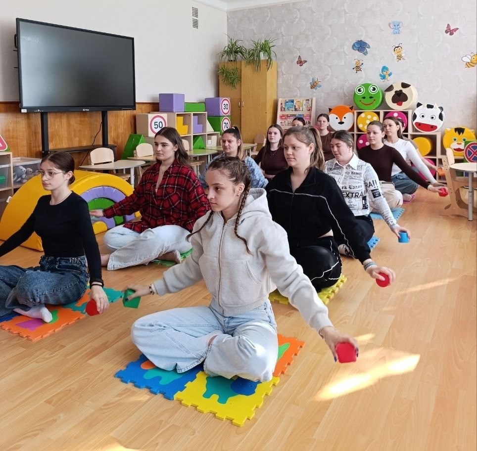 Під час заняття студенти відпрацьовували узгодженість рухів із музичним супроводом, вчилися діяти ритмічно та виразно, виконуючи музично-ритмічні вправи. Особлива увага приділялася ролі вихователя як активного учасника музичних занять: майбутні педагоги практикували демонстрацію точних, чітких рухів і надання доступних рекомендацій дітям у процесі навчання.